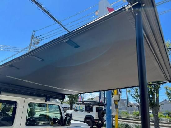 ラックとオーニングが揃うことで、アウトドアリビング空間へ。